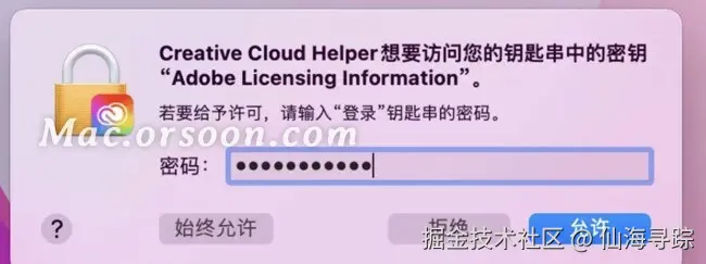Creative Cloud Helper想要访问您的钥匙串中的密钥“Adobe Licensing Information”。