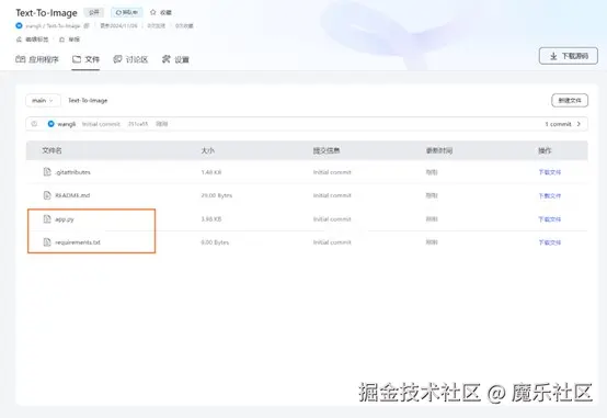 下一步,点击文件页面,修改app.py和requirements.txt,