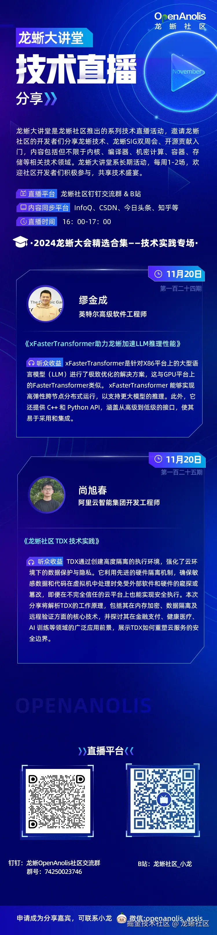 「龙蜥大讲堂」直播精彩预告来啦!本期大讲堂将精选了 2024 龙蜥操作系统大会-技术实践分享。欢迎扫提前进群,坐等精彩分享开始。