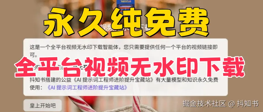 所以,想要下载无水印视频的朋友们,别再纠结了。视频无水印下载可以完美解决你的所有问题。这款永久免费、操作简单、支持全网平台、下载高清无损画质的智能体软件,绝对是你值得拥有的不二之选。赶紧点击链接,体验一下吧!