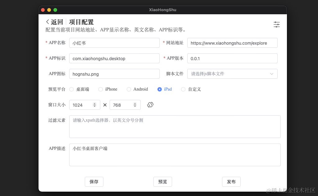 3.你可以在新窗口中预览应用程序,点击发布按钮打包应用程序