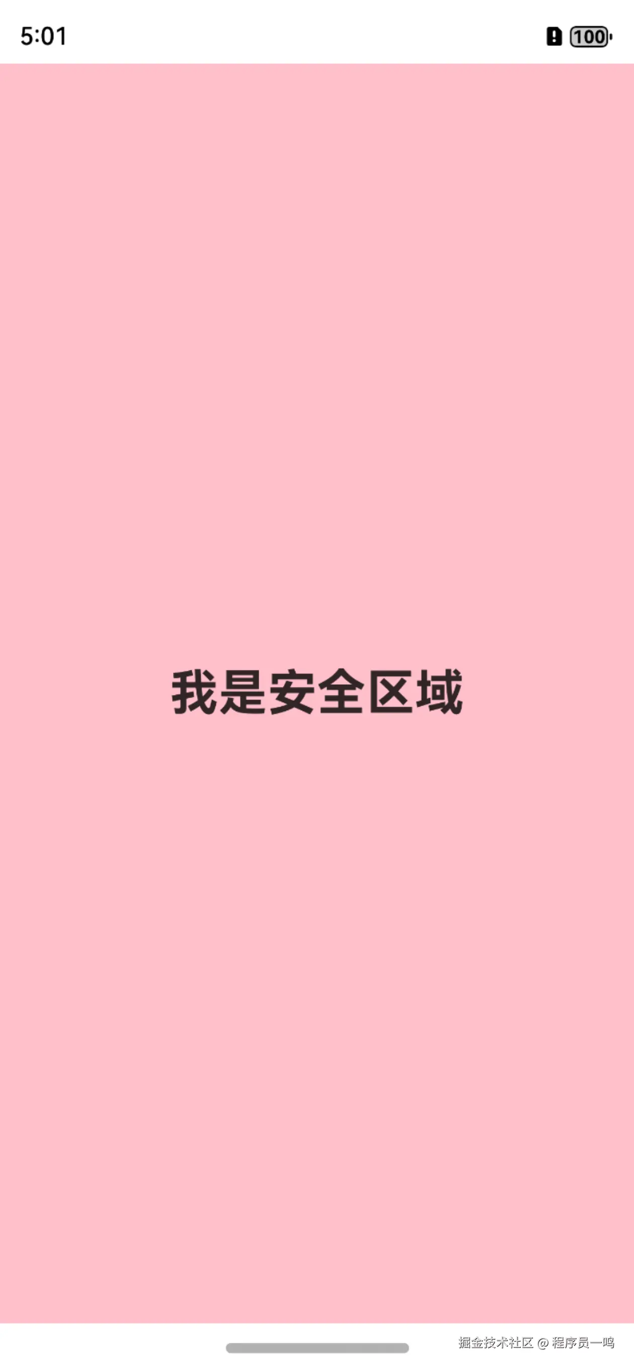 安全区域是指页面的显示区域,也就是状态栏、导航栏区域之外的区域,没有特殊的情况,默认下开发者开发的界面都是在安全区域内,如下图,粉色的区域就是安全区域。