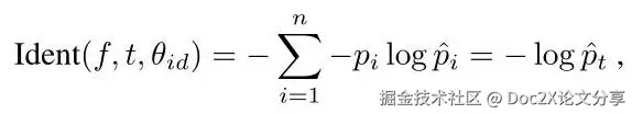 DeepID2 特征在两个监督信号下进行学习。第一个信号是人脸识别信号,它将每个面部图像分类为 (例如,)个不同的身份。通过在 DeepID2 层之后跟一个 类别的 softmax 层来实现身份识别,该层输出一个对 类别的概率分布。网络被训练以最小化交叉熵损失,我们称之为识别损失。其公式表示为