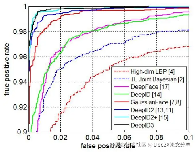 图 5:LFW 上面孔验证的 ROC 曲线。