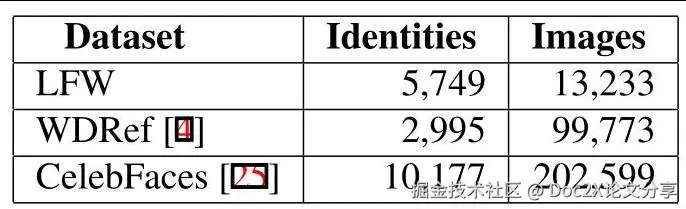 表1:数据集比较:我们的数据集在Google、Facebook或百度等工业数据集之外拥有最大的人脸图像集合,这些工业数据集并未公开。