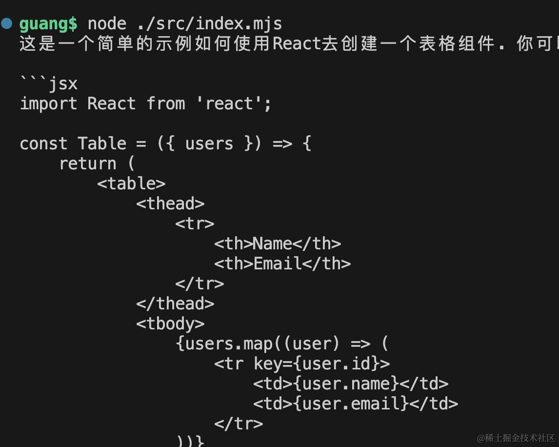 {role: 'user', content: '生成一个 Table 的 React 组件'}