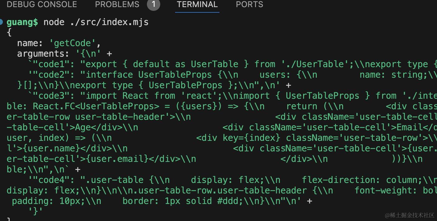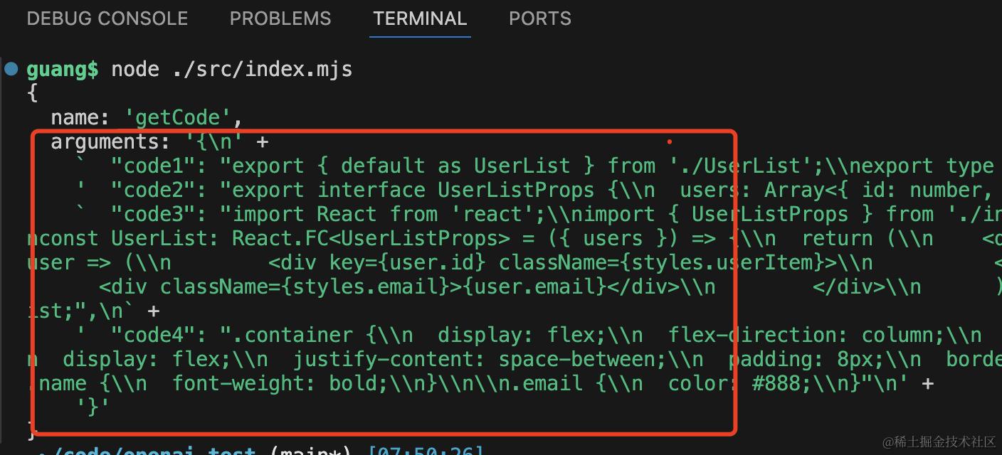 传入 tools 数组,创建一个 getCode 的函数,指定参数是一个对象,有 code1、code2、code3、code4 这四个属性,内容分别是 4 个文件的内容。
