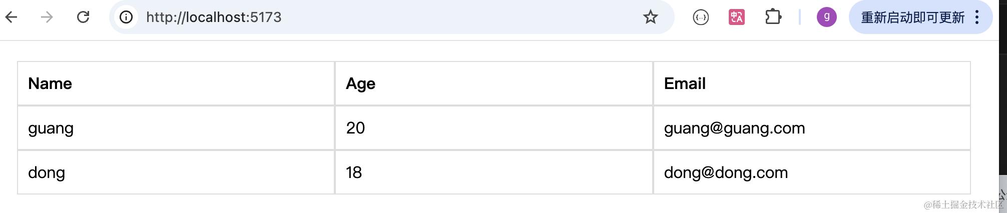 可以看到,Table 组件正常渲染出来了: