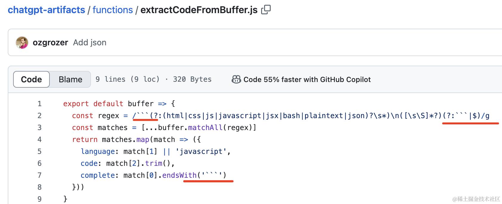 所以我们要做 bolt.new 这种工具也可以用正则匹配把代码摘出来: