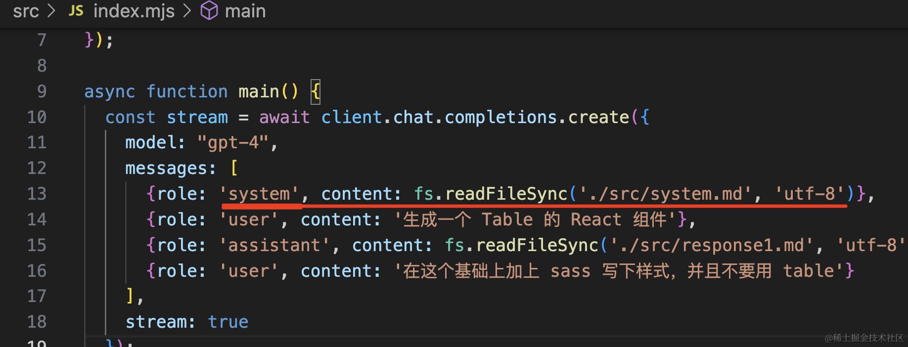 {role: 'system', content: fs.readFileSync('./src/system.md', 'utf-8')},