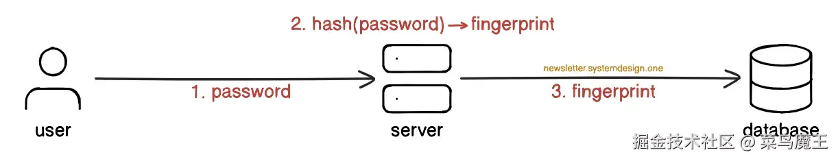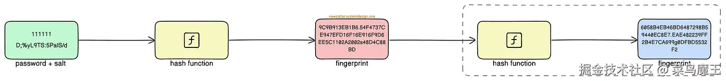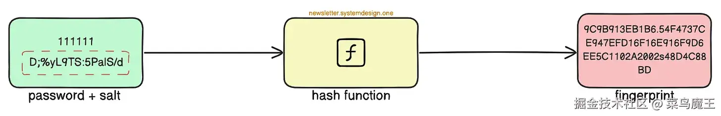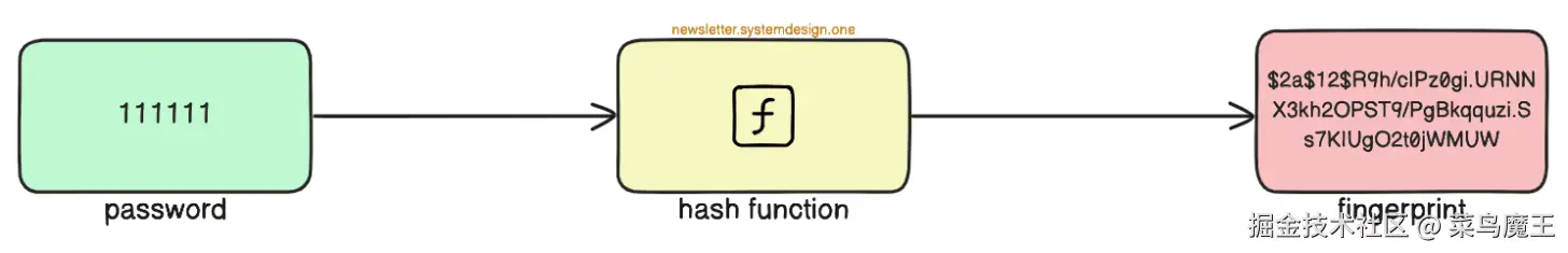 哈希函数的作用在于,它能够将密码转换成一个独一无二的字符串 —— 我们称之为“指纹”。重要的是,这种转换是不可逆的,也就是说,你无法从“指纹”反推出原始的密码。