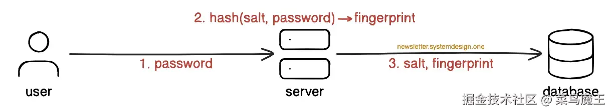 当用户创建账户时,服务器会为该用户创建一个唯一的“盐”。