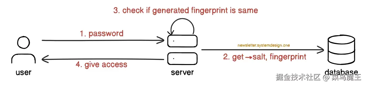 当用户输入密码时,服务器会从数据库中检索特定用户的“盐”。