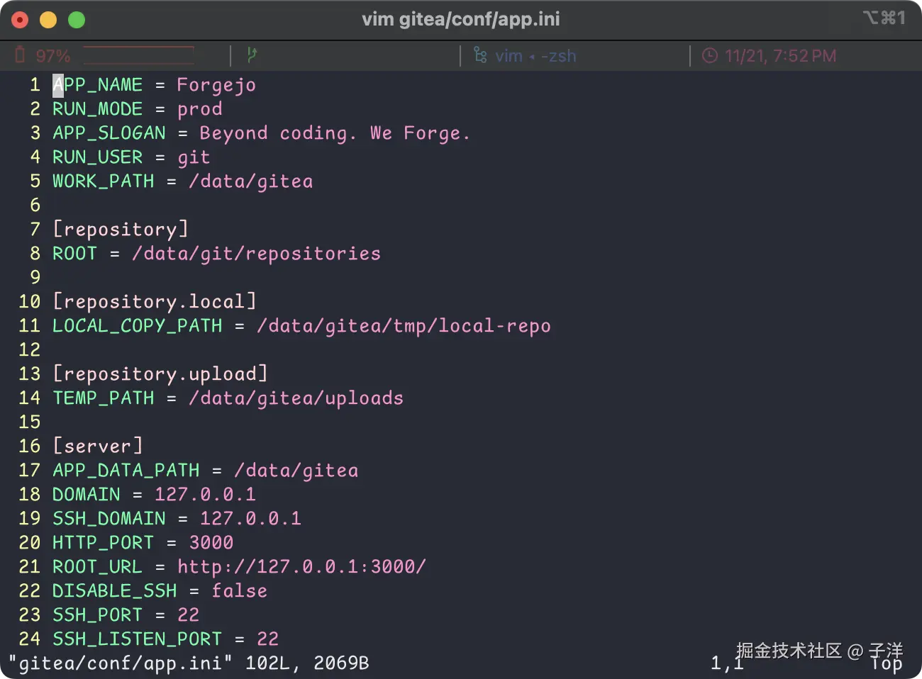 当我们安装好 forgejo 以后,还可以在 <forge-data>/gitea/conf/api.ini 修改配置。