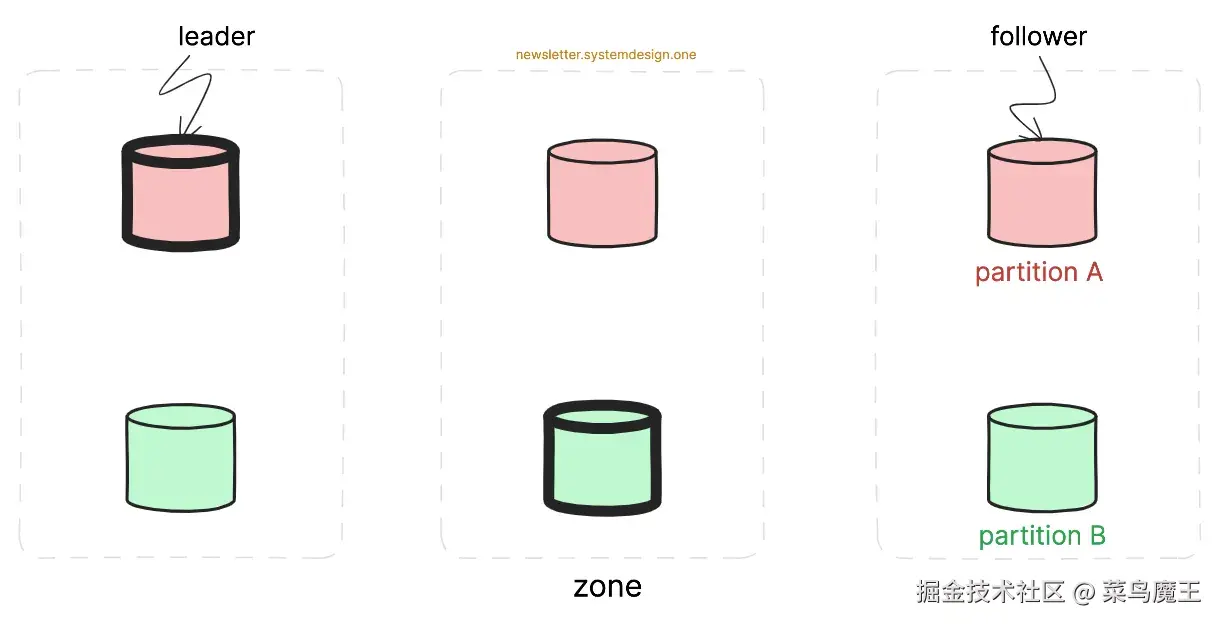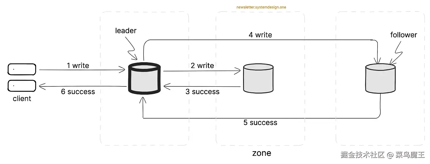 然后,数据会基于领导者-跟随者复制技术,被复制到其他跟随者节点。