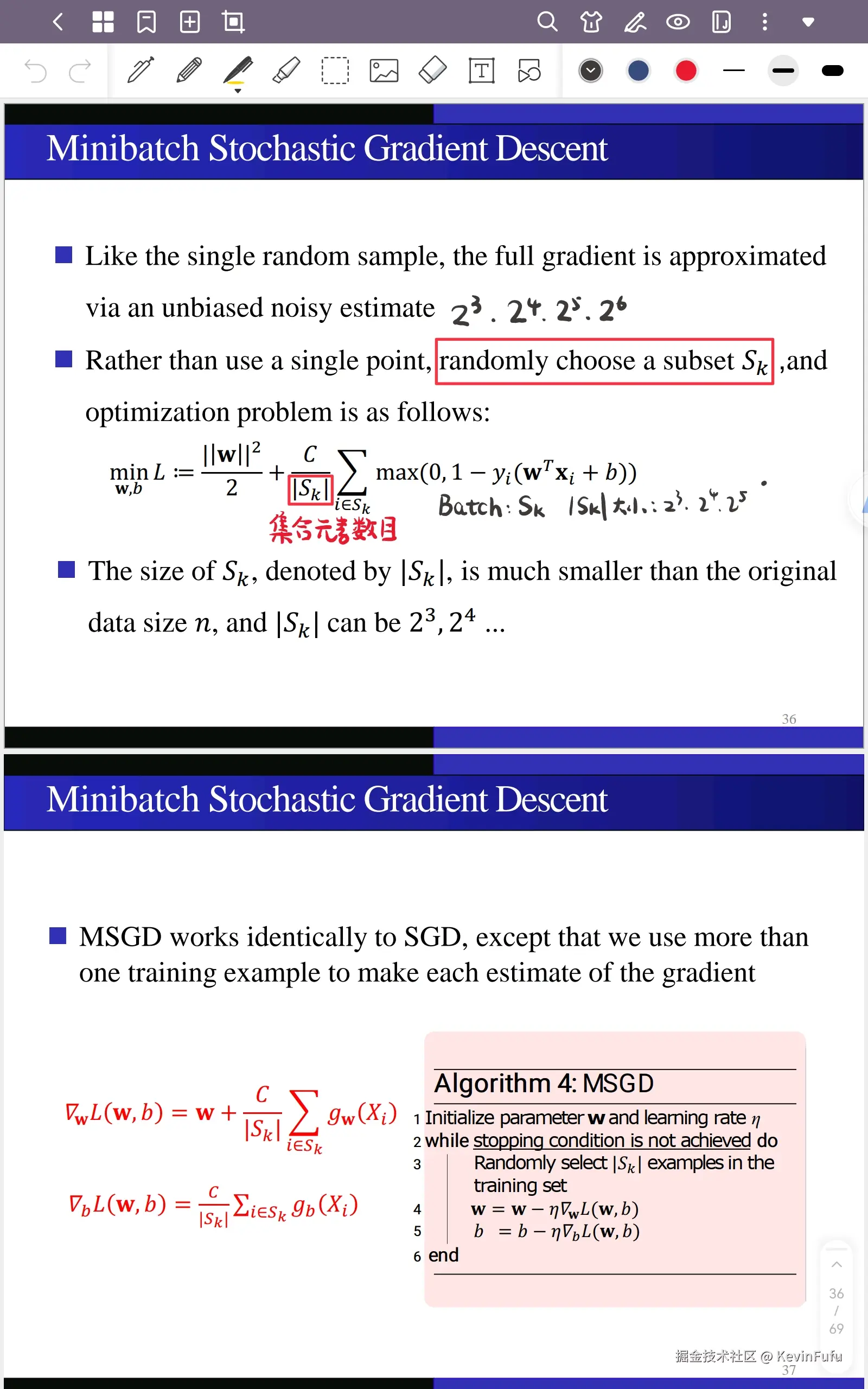 与其使用一个点,我们会随机地选择一个子集 Sk,从而将优化问题转化为以下形式: