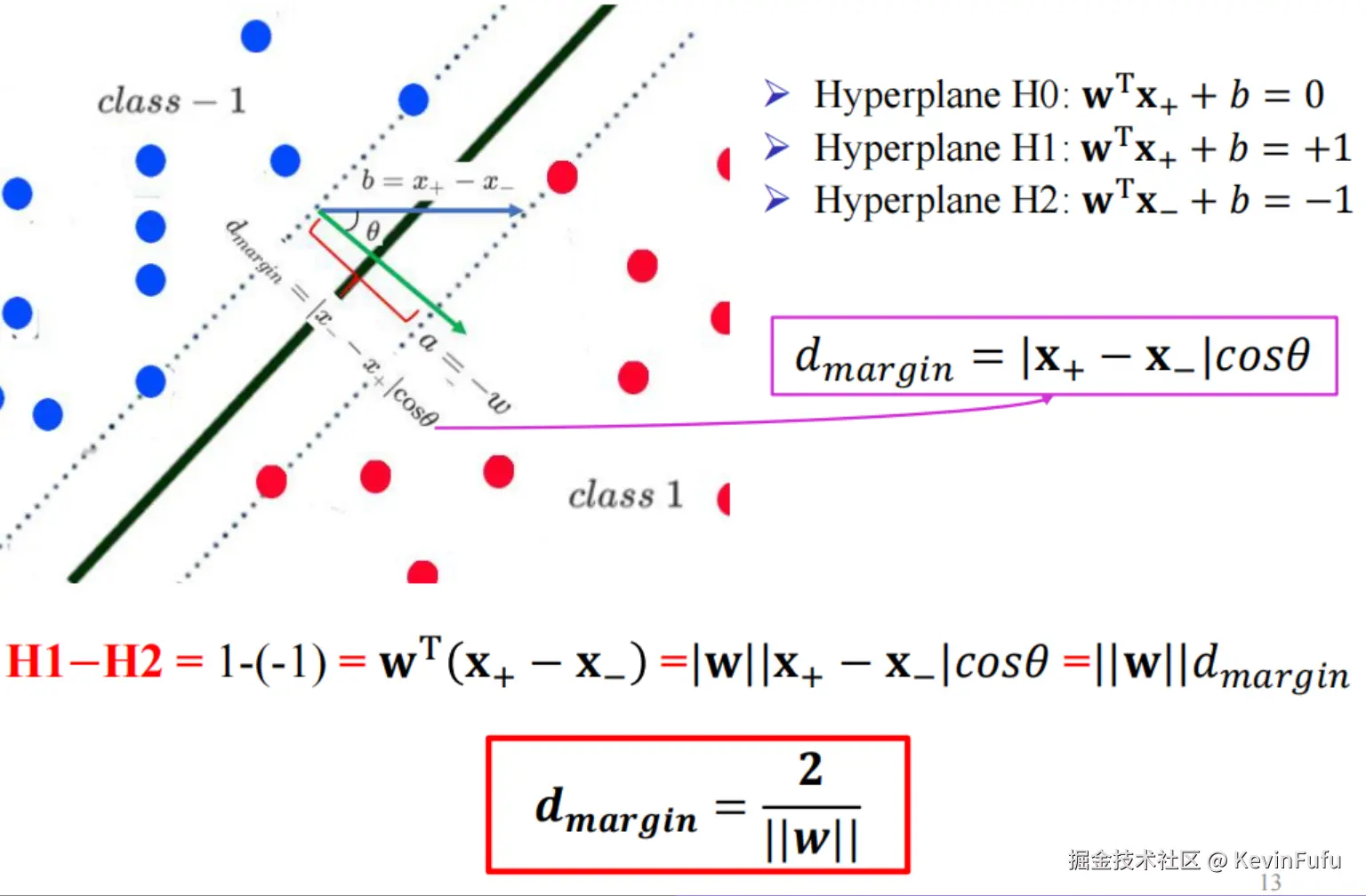 如果在 3D 空间的话,这一种划分方式是一个平面,m-D 是一个(hyperplane)超平面。