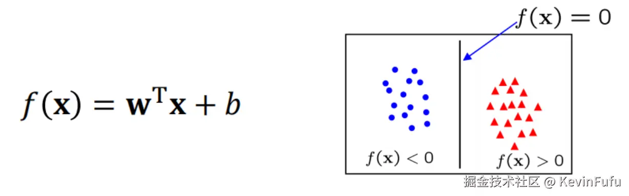 其中,在 2D 空间,这一种划分方式是一条线,w 是 normal (法线) ,而 b 是偏差 bias。w 也可以被称为是权重向量。
