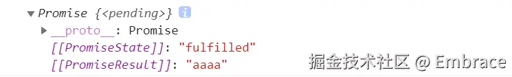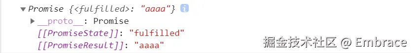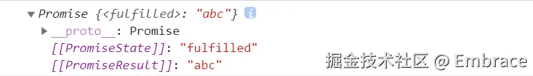 const p = Promise.resolve('aaaa') // 相当于: /* const p = new Promise((resolve, reject) => { resolve('aaaa') }) */ p.then(res => { console.log(res) // aaaa }) console.log(p) -
