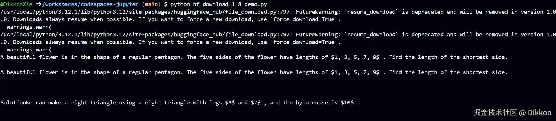 使用 python hf_download_1_8_demo.py 命令执行,可得到结果: