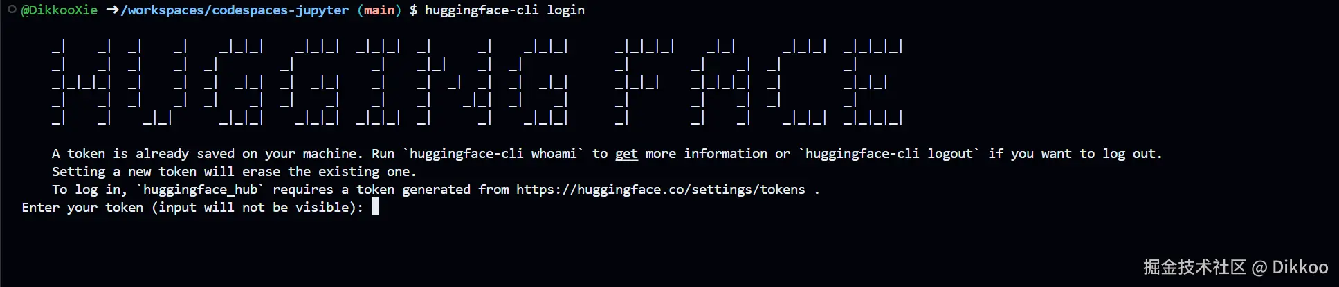 此处需要键入 Token 进行登录,Token 需到 huggingface.co/settings/to… 页面添加。
