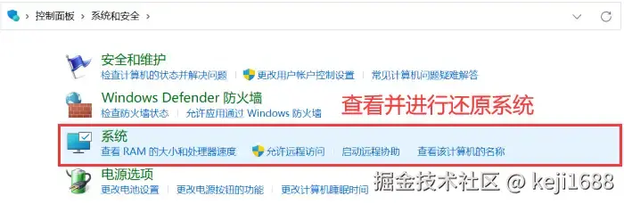 方法:打开电脑【控制面板】,选择【系统和安全】下的【系统】。点击【打开系统还原】,按照提示操作即可。