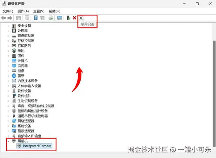在笔记本的设备管理器中也可以打开其摄像头功能,用户只需要按下【Win+X】组合键,并选择【设备管理器】进入,找到【照相机】选项,启用相关功能(显示禁用则表示已经开启)。即可解决笔记本摄像头怎么打开的问题。