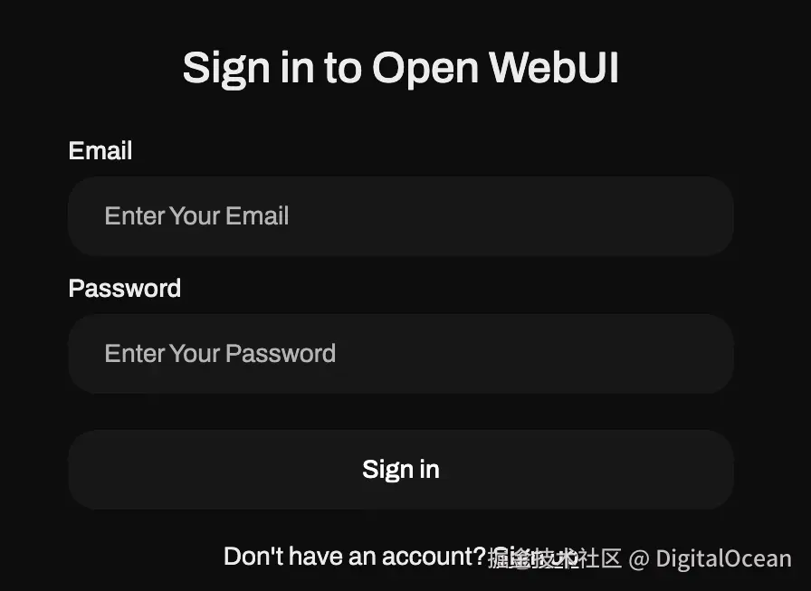Open WebUI 容器启动并运行后,你可以通过浏览器访问 http://<your_gpu_droplet_ip>:3000。