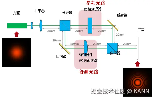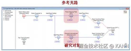 测量系统(MSY.0001 v1.1) 应用示例简述 1. 系统说明 光源— 氦氖激光器(波长632.8nm;相干长度>1m) 元件— 分束器和合束器,消色差准直透镜系统,位相延迟器,待测球面透镜 探测器— 干涉条纹 建模/设计— 光线追迹:初始系统概览— 几何场追迹加(GFT+): 计算干涉条纹。 分析对齐误差的影响。 2. 系统说明 参考光路 3. 建模/设计结果 4. 总结 马赫泽德干涉仪的干涉图样的计算 1. 仿真以光线追迹对干涉仪的仿真。2. 计算采用几何场追迹+引擎以计算干涉图样。3. 研究不同对齐误差在干涉图上的影响,如倾斜和偏移 利用VirtualLab软件可对马赫泽德干涉仪生成的干涉图案进行研究分析。 应用示例详细内容 系统参数 1. 仿真任务:马赫泽德干涉仪 通过使用这种干涉仪设置,可测量两完全相同光束线间的相对相移。 这使得可以对一个样品元件引起的相移进行研究。 2. 说明:光源 使用一个频率稳定、单模氦氖激光器。 因此,相干长度大于1m 此外,由于发散角很小,所以不需要额外的准直系统。 在入射干涉仪之前,高斯波以瑞利长度传播。 3. 说明:光源 采用一个放大因子为3的消色差扩束器。 扩束器的设计是基于伽利略望远镜。 因此,在光学表面序列(OIS)中结合了一个扩束和准直系统。 与开普勒望远镜相比,在扩束系统中不会成实像。 4. 说明:光学元件** ** 在参考光路中设置一个位相延迟平板。 位相延迟平板材料为N-BK7。 所研究的元件为球面镜,其曲率半径为100mm。 透镜材料为N-BK7。 其中心厚度与位相平板厚度相等。 5. 马赫泽德干涉仪光路视图 增加消色差系统和分束器距离是为了使3D视图更加清晰(可在光路编辑器中实现)。 由于VirtualLab的相对位置系统,必须设置Z轴方向的距离。 |