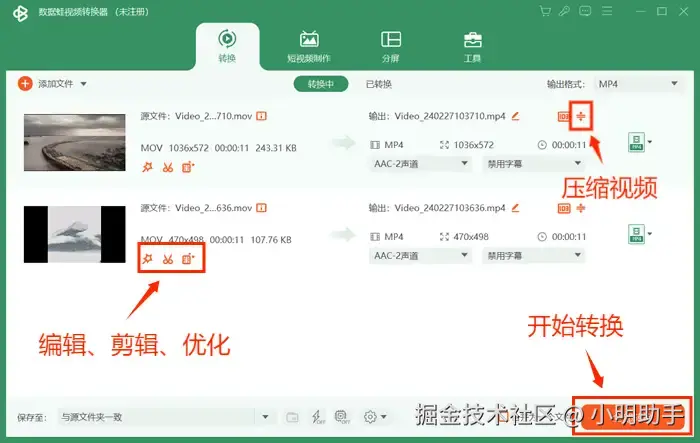 (3)转换速度快,输出质量高,保留原始视频的清晰度和音频质量。