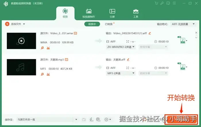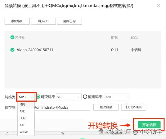 第四步: 点击【转换】按钮开始转换音频格式。