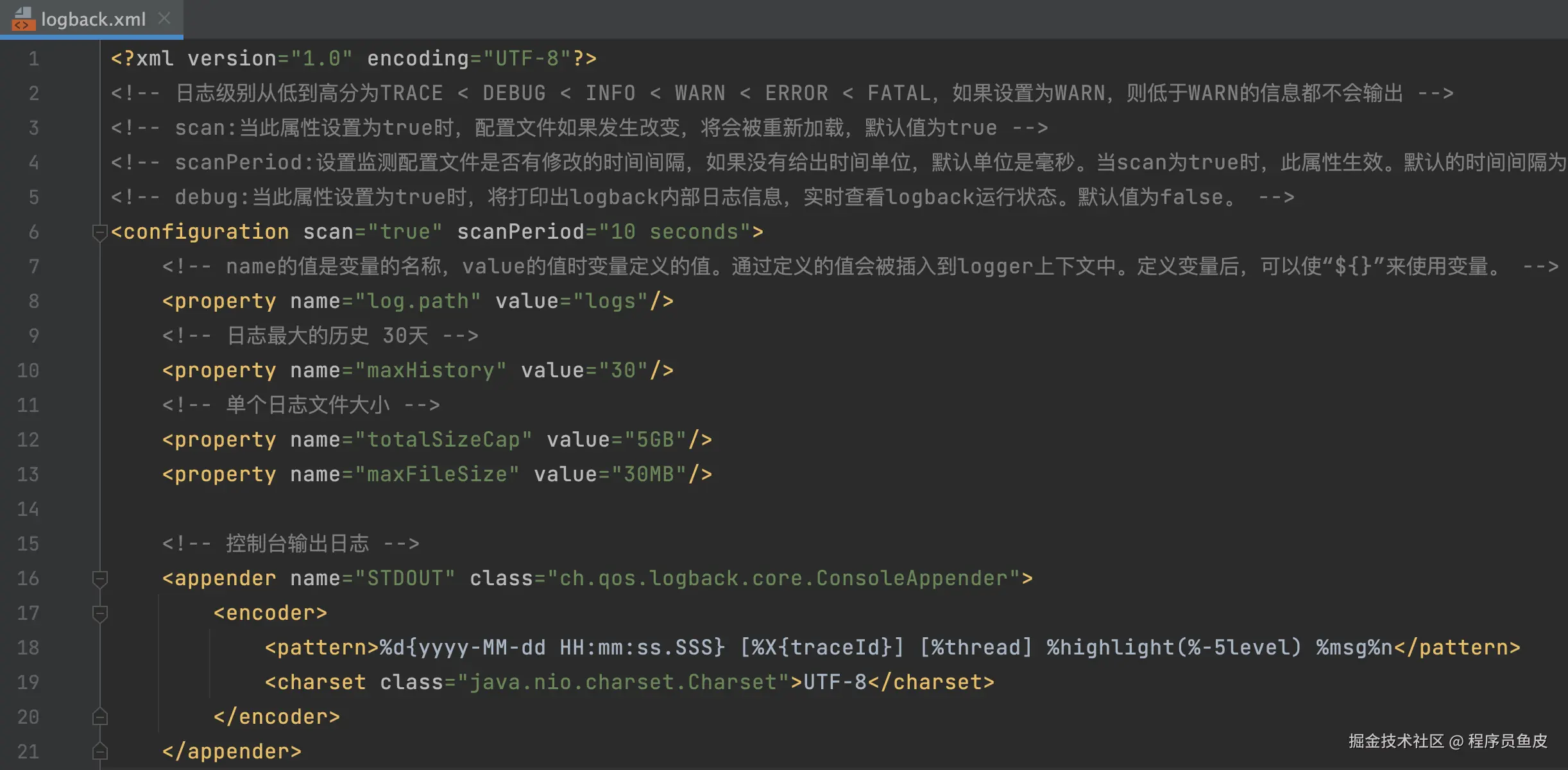 首先是设置日志的滚动策略,可以根据文件大小或日期,自动对日志文件进行切分。比如按文件大小滚动: