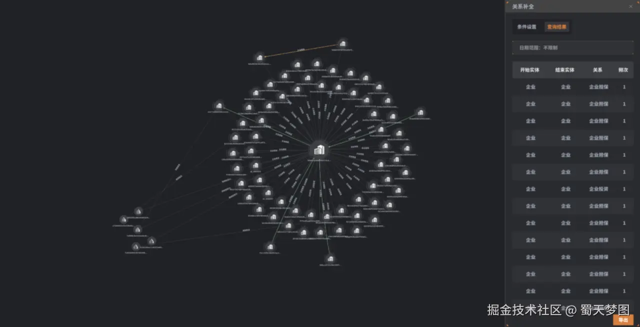 揭示关键风险节点:通过知识图谱的可视化技术,揭示在担保网络中对整体风险影响最大的关键节点企业。