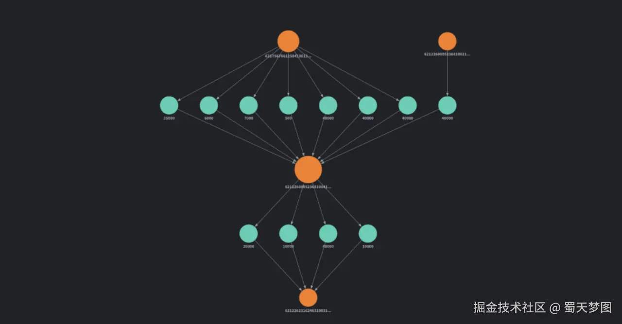 在本案例中,通过对目标账户的分析,探索了其流入和流出的两层关联交易网络,并结合转账金额与转账时间,深入探查可疑交易账户,最终得出了以下结论: