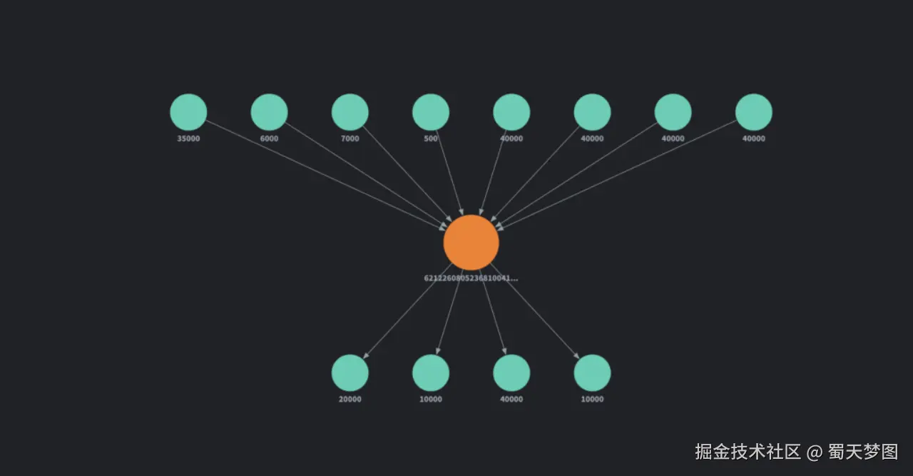 关联交易网络:探索目标账户的流入和流出交易的关联网络,重点关注转账金额和转账时间。