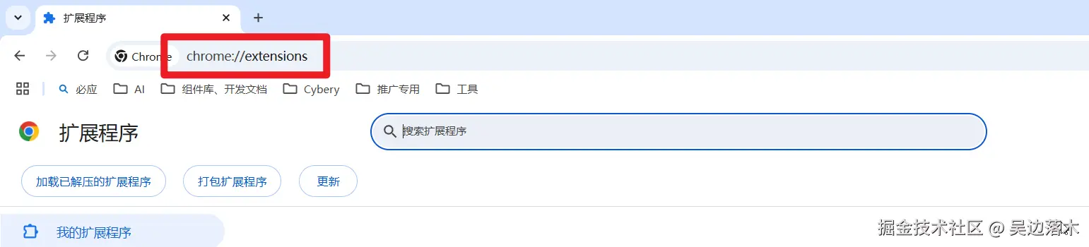 或者在浏览器的地址栏中输入 chrome://extensions/, 然后回车也行:
