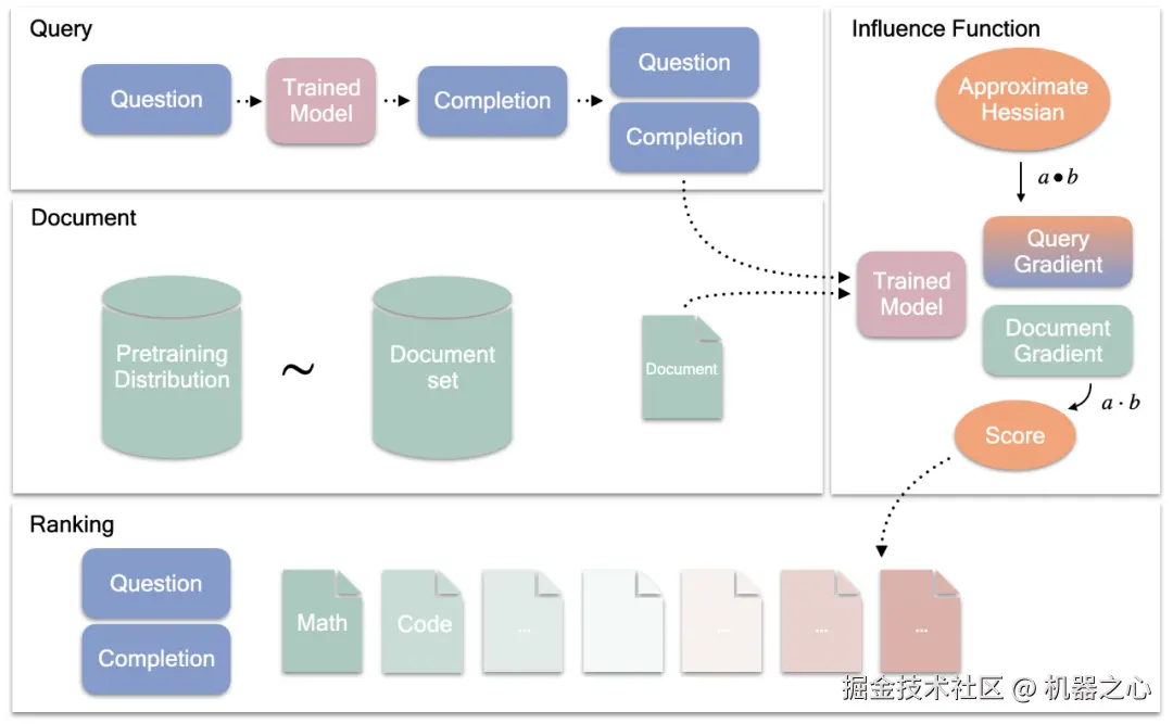 研究者选择了两个不同体量的模型(7B 和 35B),分别是 Cohere 的 Command R 系列的基础和监督微调版本。其中,他们使用基础模型估计二阶信息并计算文档梯度,并使用监督指令微调模型生成完成并计算查询梯度。