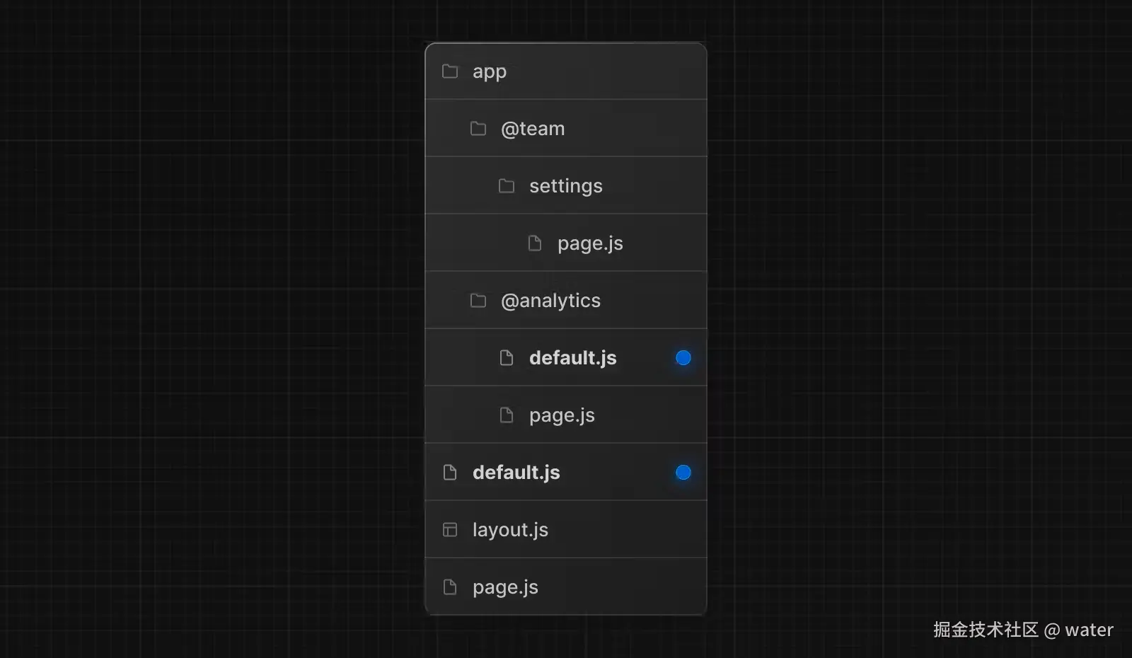 children prop是一个隐式插槽,不需要映射到文件夹。这意味着app/page.js相当于app/@children/page.js。