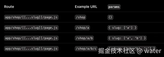 如果是可选的多级匹配参数,可以使用两个中括号来包裹参数。比如/post/[[...id]]/page.tsx就可以匹配到/post和/post/1和/post/1/2/3这样的路由。和上面的区别就是如果没有参数会匹配到/post这个路由。