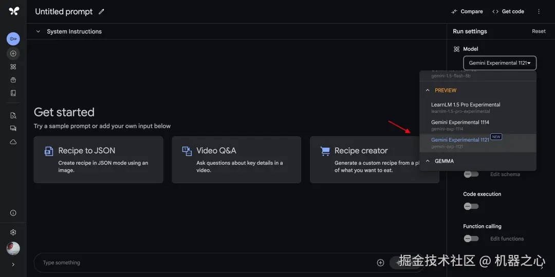 目前,Gemini-Exp-1114 和 Gemini-Exp-1121 在 Google AI Studio 上均为可用状态: