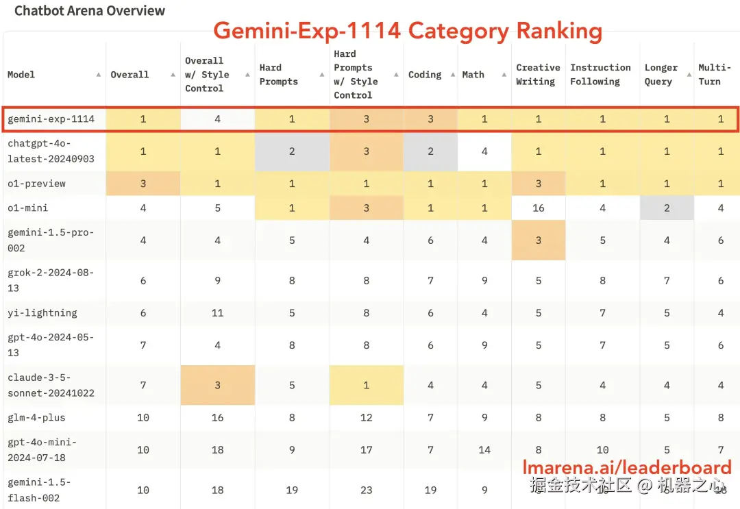 一周前,谷歌的 Gemini-Exp-1114 模型取代 GPT-4o,坐上了 Arena 榜单的头把交椅。