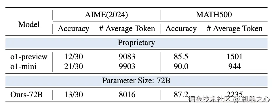 结果表现,在相似的 “推理计算代价”(即在对应 benchmark 的平均输出 token 类似的情形下),采用蒸馏技术得到的模型具有出色的表现,在 AIME2024 上超过了 o1-preview 的表现。