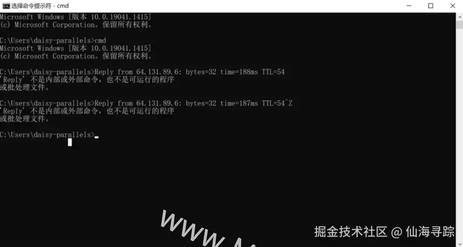 输入以下命令,尝试 ping 任何 Parallels 服务器:ping parallels.com 正常的输出如下所示: