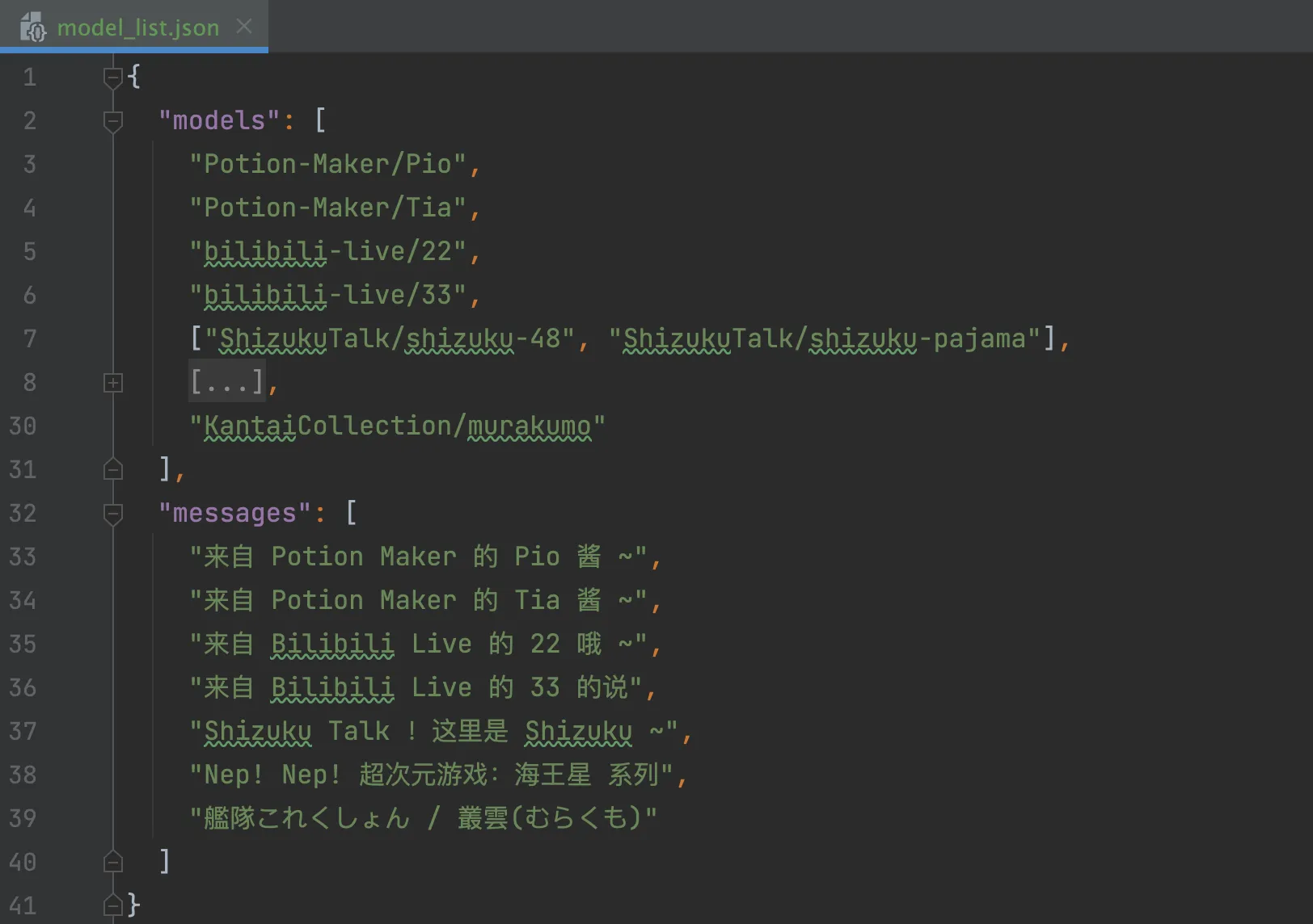 大家可以自行修改模型列表配置文件 model_list.json (数组的每个元素都是一个模型、二维数组的每个元素是不同的皮肤):