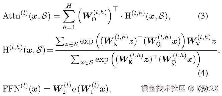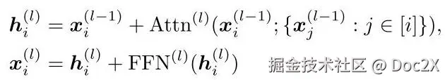 这里, 和 分别表示第 个Transformer块的多头自注意力层和前馈网络: