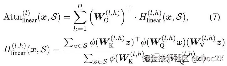其中他们选择 。通过重新排列计算顺序,可以使与不同 相关的中间结果 和 可以联合计算使用前缀和,最终得到复杂度为 ,即 的线性复杂度。