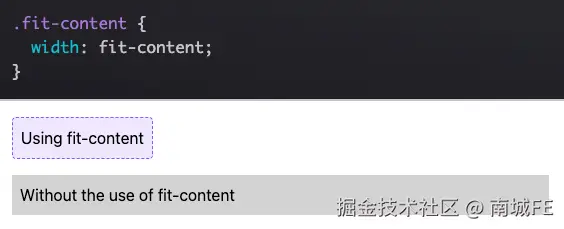 我最喜欢的 CSS 隐藏技巧之一是使用 fit-content 来适应内容的大小。虽然您可能使用过 display: inline-block 这样的行内显示值来将元素的宽度缩小到内容大小,但将宽度设置为 width: fit-content 也能实现相同的效果。width: fit-content 的优点在于它保留了显示值,因此不会改变元素在布局中的位置,除非您也调整该值。计算出的盒子大小将根据 fit-content 创建的尺寸进行调整。