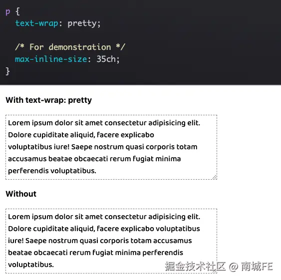 截至 2023 年,最新的属性之一是 text-wrap,它有两个值,可以解决排版中不平衡行的问题。这包括防止“orphans”现象,即在最后一行文本中独自存在的孤零零的单词。