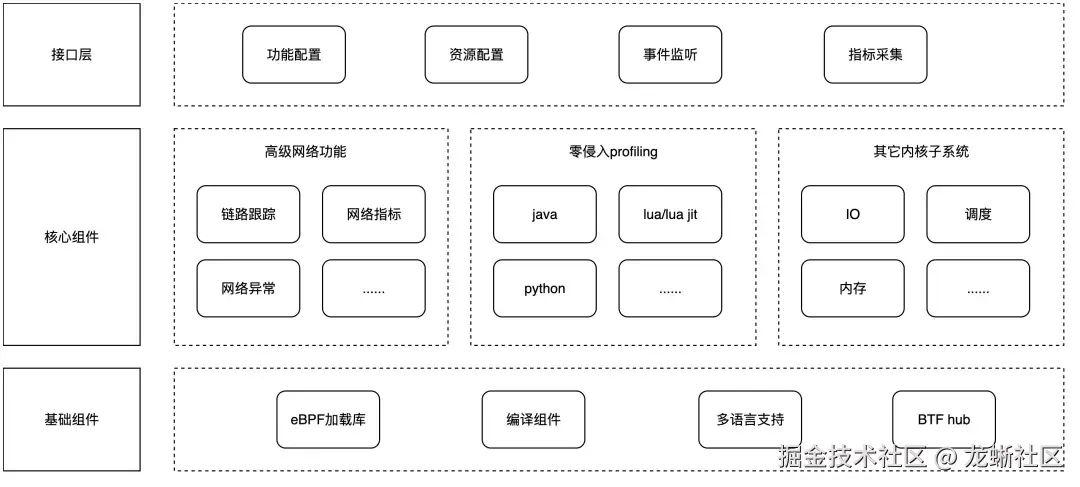 另外,由于 eBPF 技术的普及和广泛应用于实际生产中,编译环境的搭建已经相当成熟,并且由于 3.10 等低内核版本已逐渐迁移到 4.19 甚至 5.10 版本,Coolbpf 也考虑把远程编译和低版本驱动特性移除。未来 Coolbpf 将更聚焦于具体功能的提供,比如用户态 probe 功能、软件网络功能、profiling 等功能,通过 lib 库等形式服务于上层的特定应用,让开发者不再纠结于系统底层细粒度的指标采集,而更专注于自己业务的应用开发,直接调用 Coolbpf 的库函数就能满足业务需求。