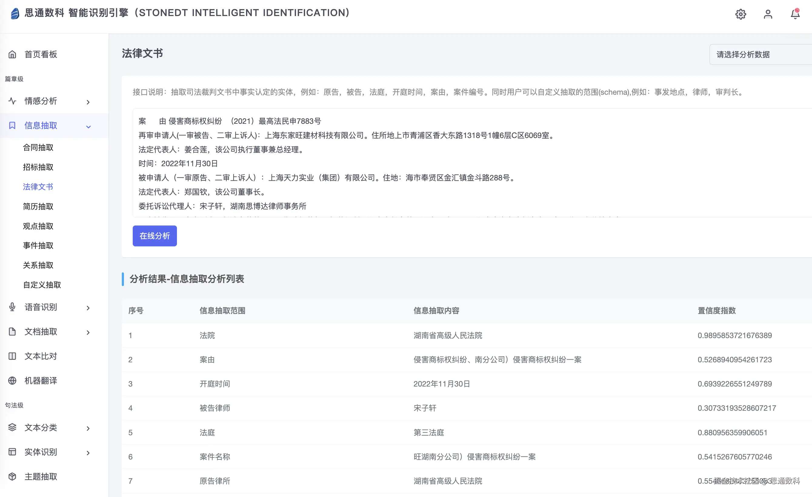 某国际知名律所需处理一批跨国案件材料,其中包括多语言合同和法庭记录。思通数科平台通过支持多语言文本解析和自动摘要,将原本需20人团队处理一周的工作压缩至3天完成。系统在高并发情况下对500页文档的摘要准确率达到了85%以上,并在多语言场景中实现稳定输出,客户评价:“极大提高了跨国案件处理效率。”